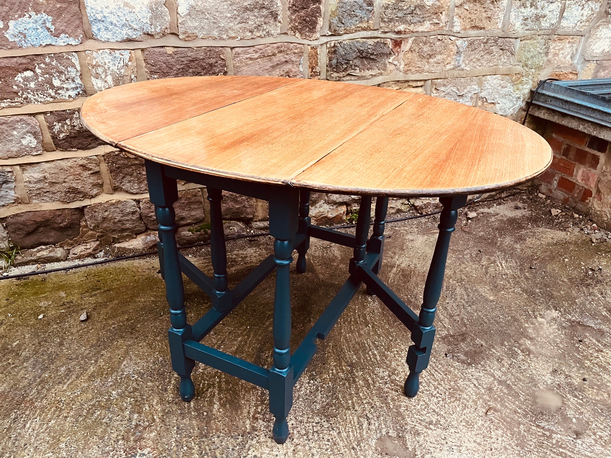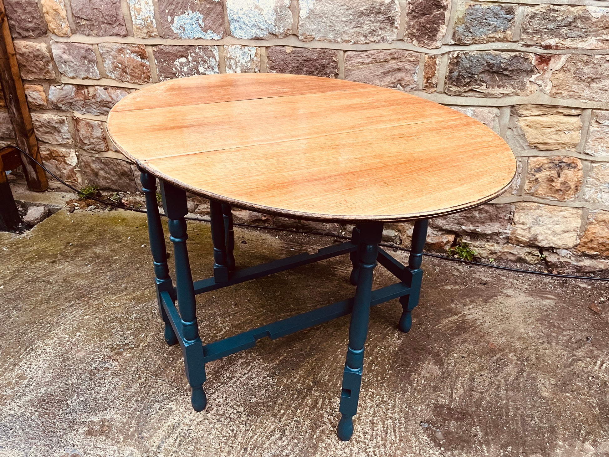 Drop-Leaf Gateleg Dining Table – Natural Wood Top & Painted Base