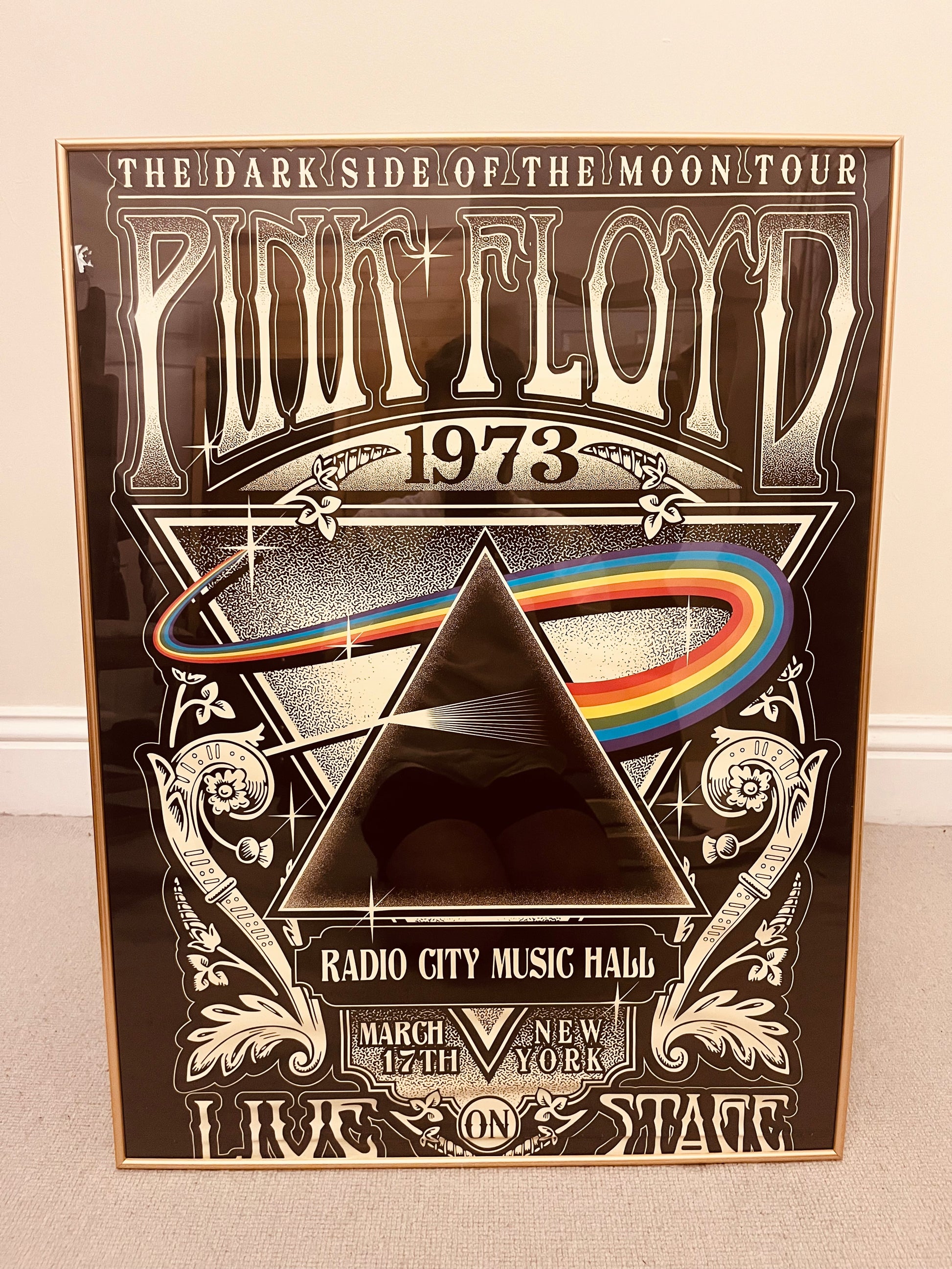 Bring a touch of rock history into your space with this beautifully framed pair of Pink Floyd posters — celebrating two iconic moments from the band’s journey: the Marquee Club, London (1966) performance and The Dark Side of the Moon Tour (1973) at Radio City Music Hall.