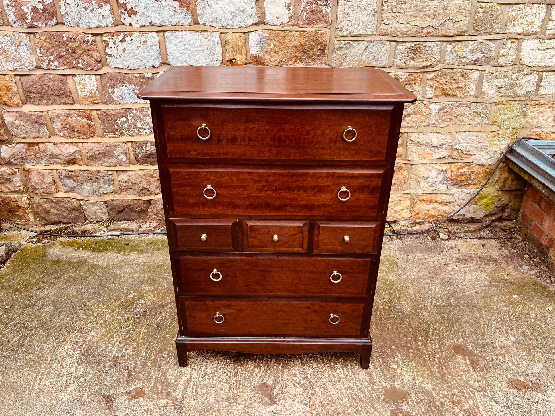 A classic Georgian-style mahogany chest of drawers, finished in a rich warm tone with elegant proportions and timeless detailing. Featuring a traditional arrangement of graduated drawers with a central trio of smaller drawers, this tallboy offers both practical storage and refined character.