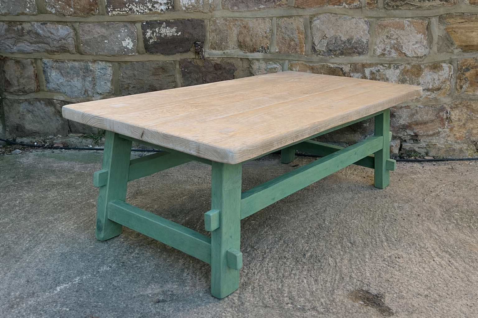 Handcrafted Solid Wood Farmhouse Coffee Table – Natural Top & Heritage Green Base