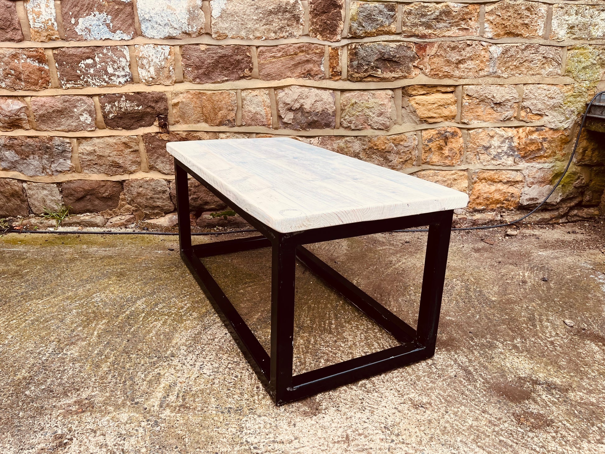 Elevate your living space with this handmade industrial coffee table, crafted with a pale solid wood top and a strong matte-black metal frame. The blend of rustic timber and clean industrial lines creates a modern yet warm focal point for any living room, studio, office or contemporary home.