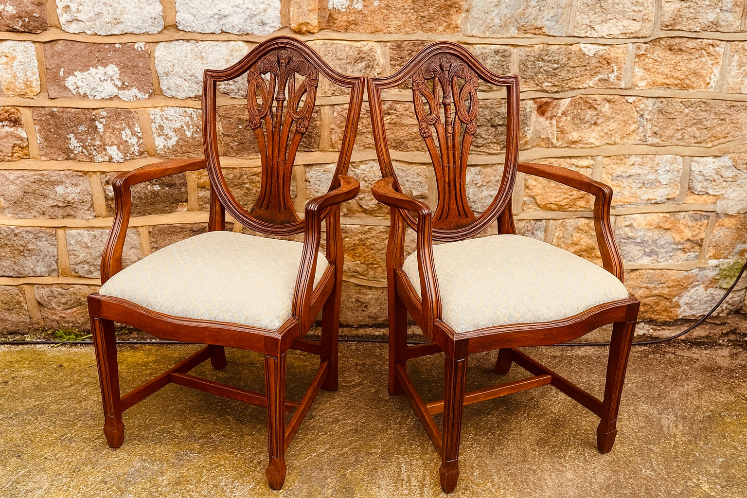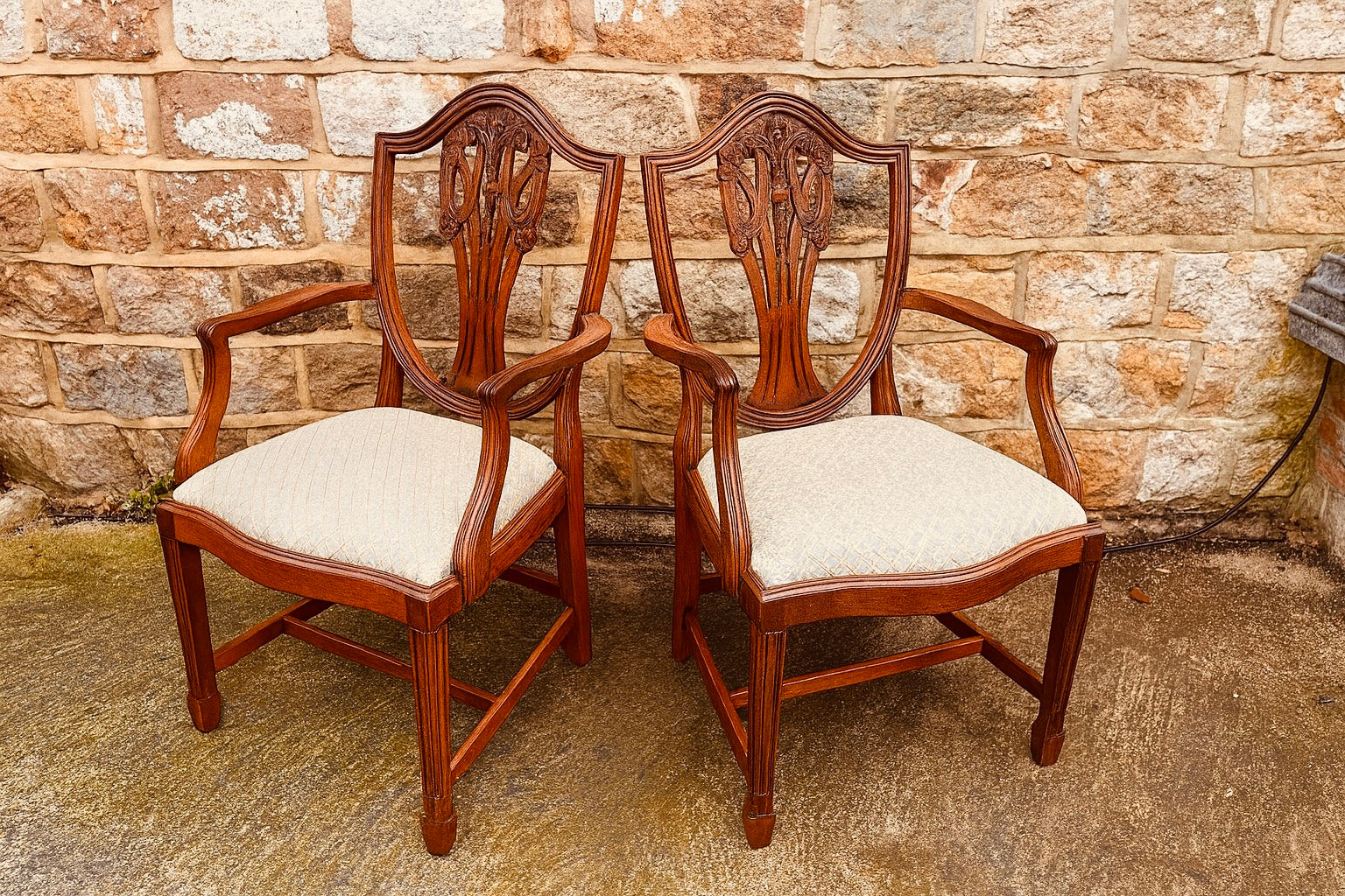 - Pair of carved shield-back armchairs