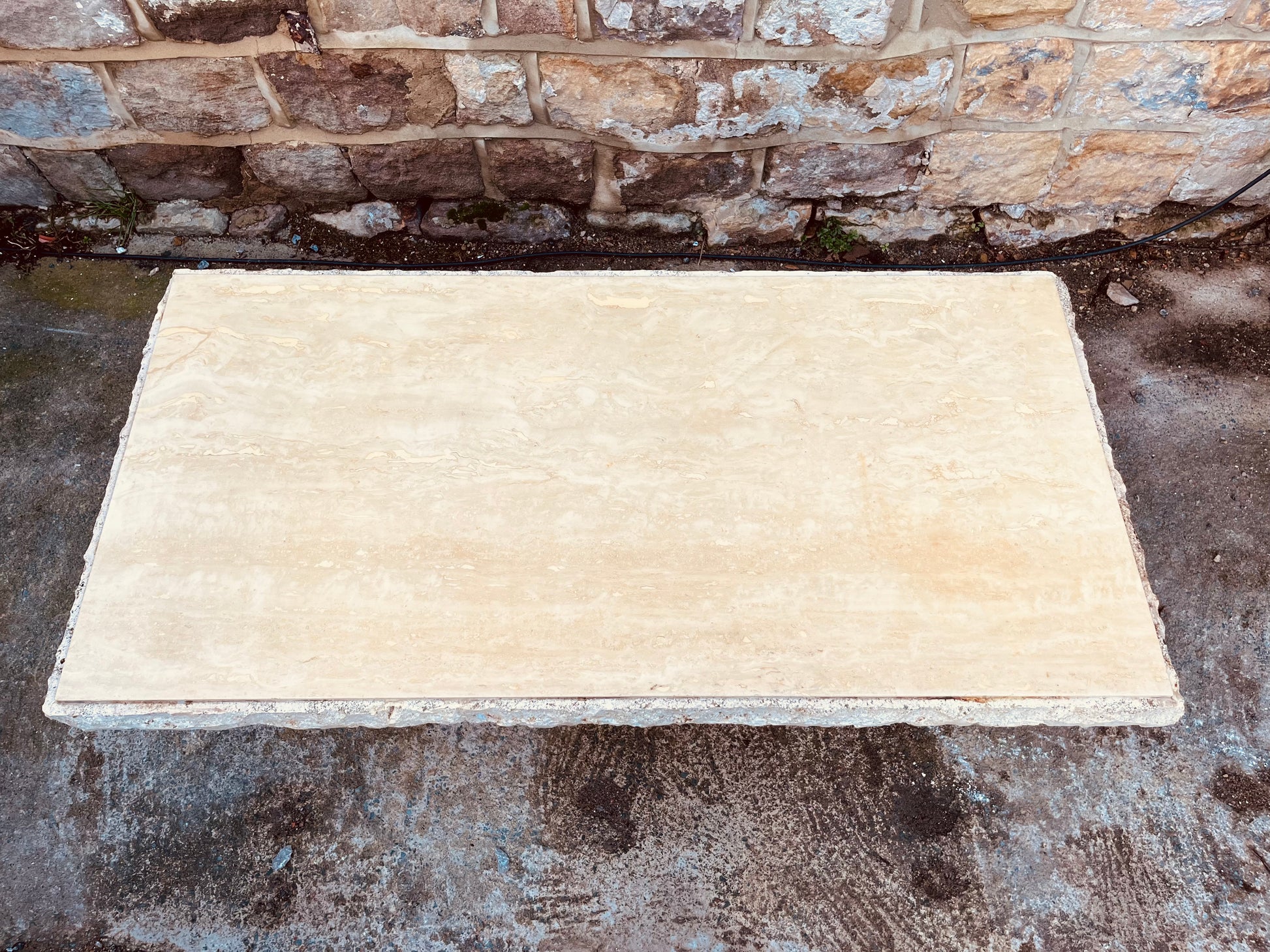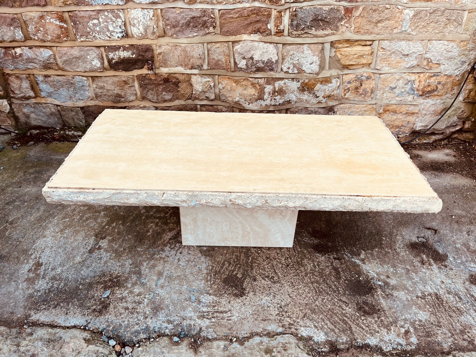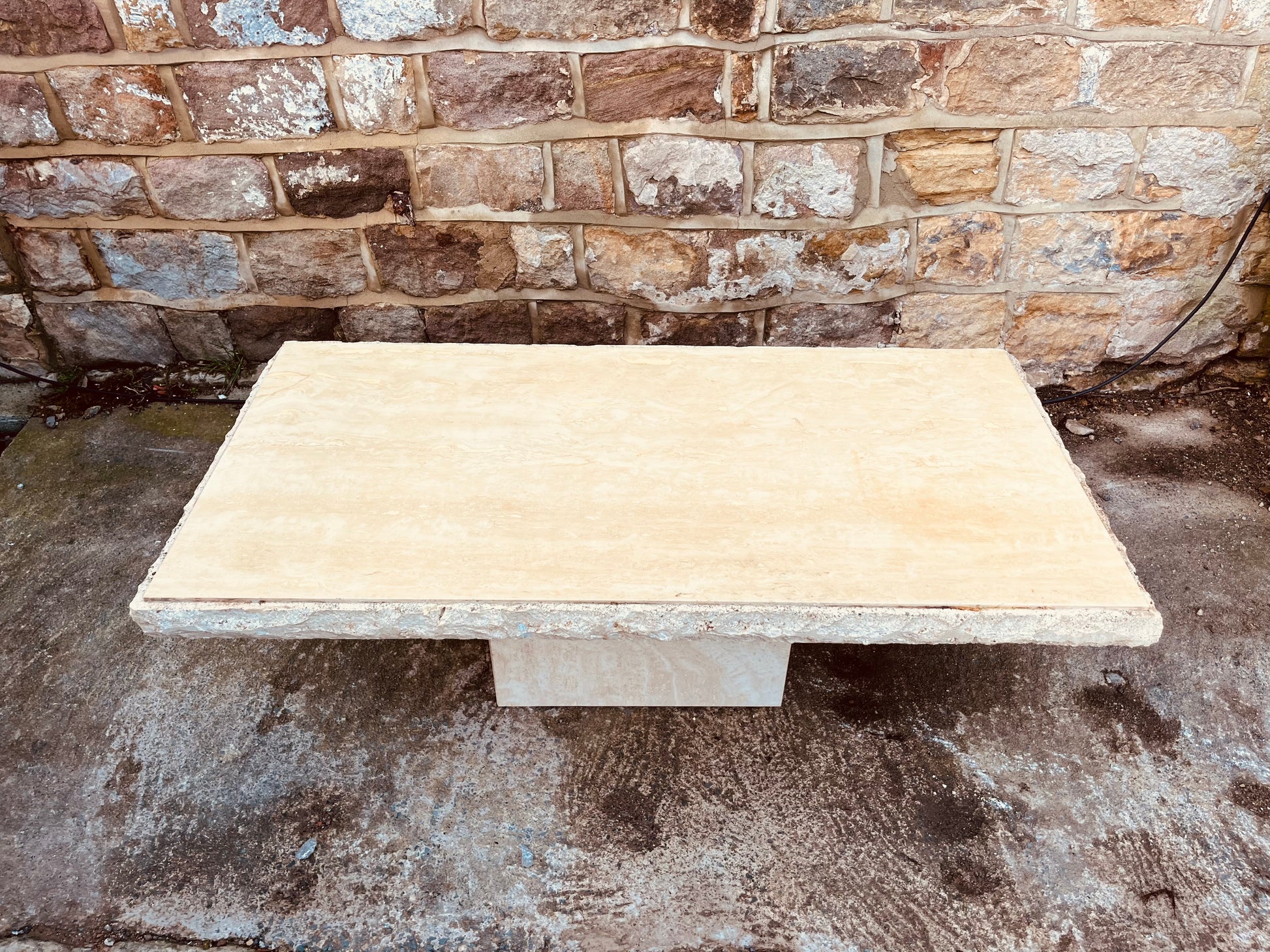 Raw Edge Travertine Stone Coffee Table – Solid Slab Minimalist Brutalist Design
