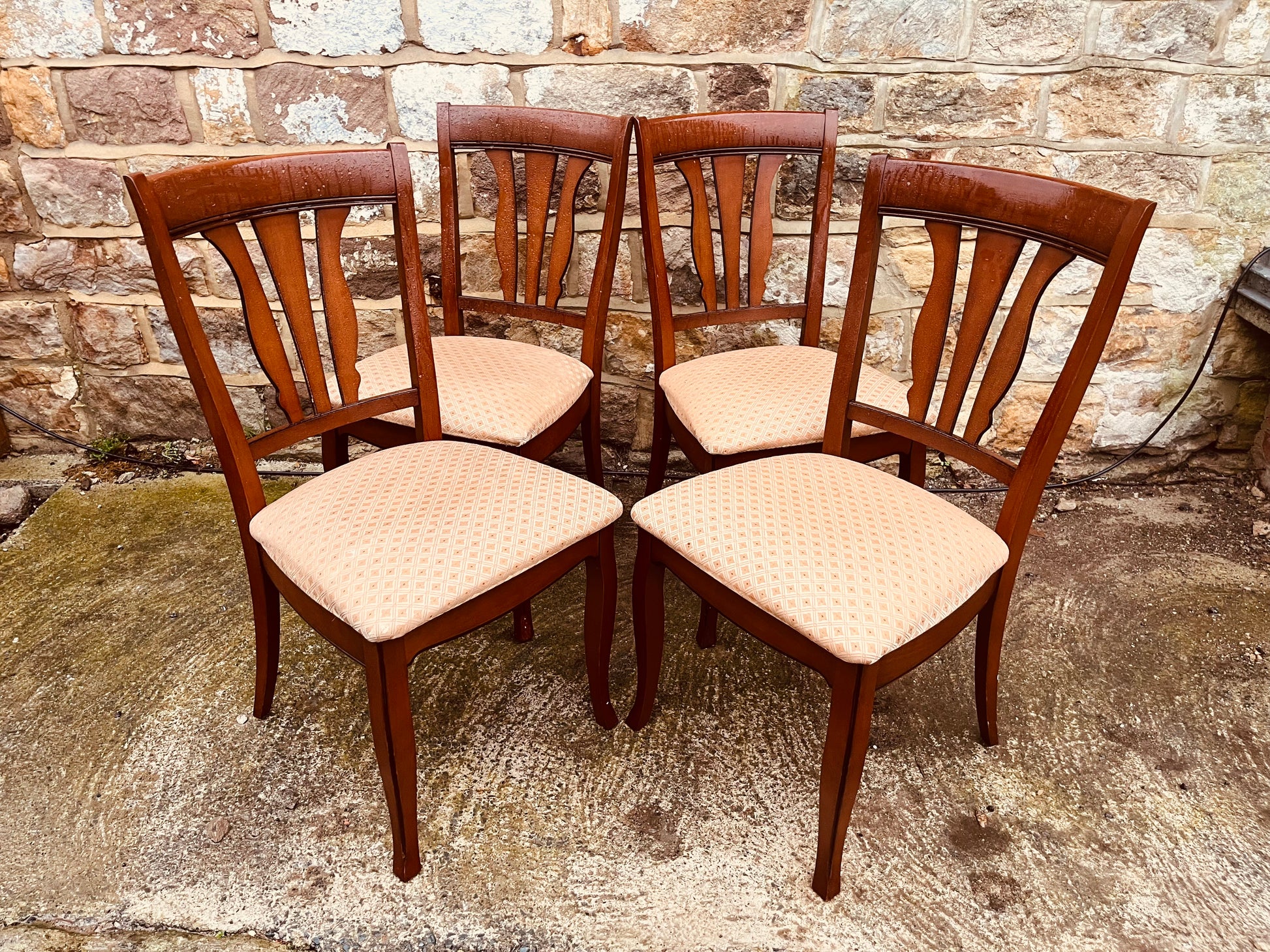 Set of 4 Vintage Dining Chairs – Upholstered Seats & Curved Back – Solid Wood Kitchen Chairs