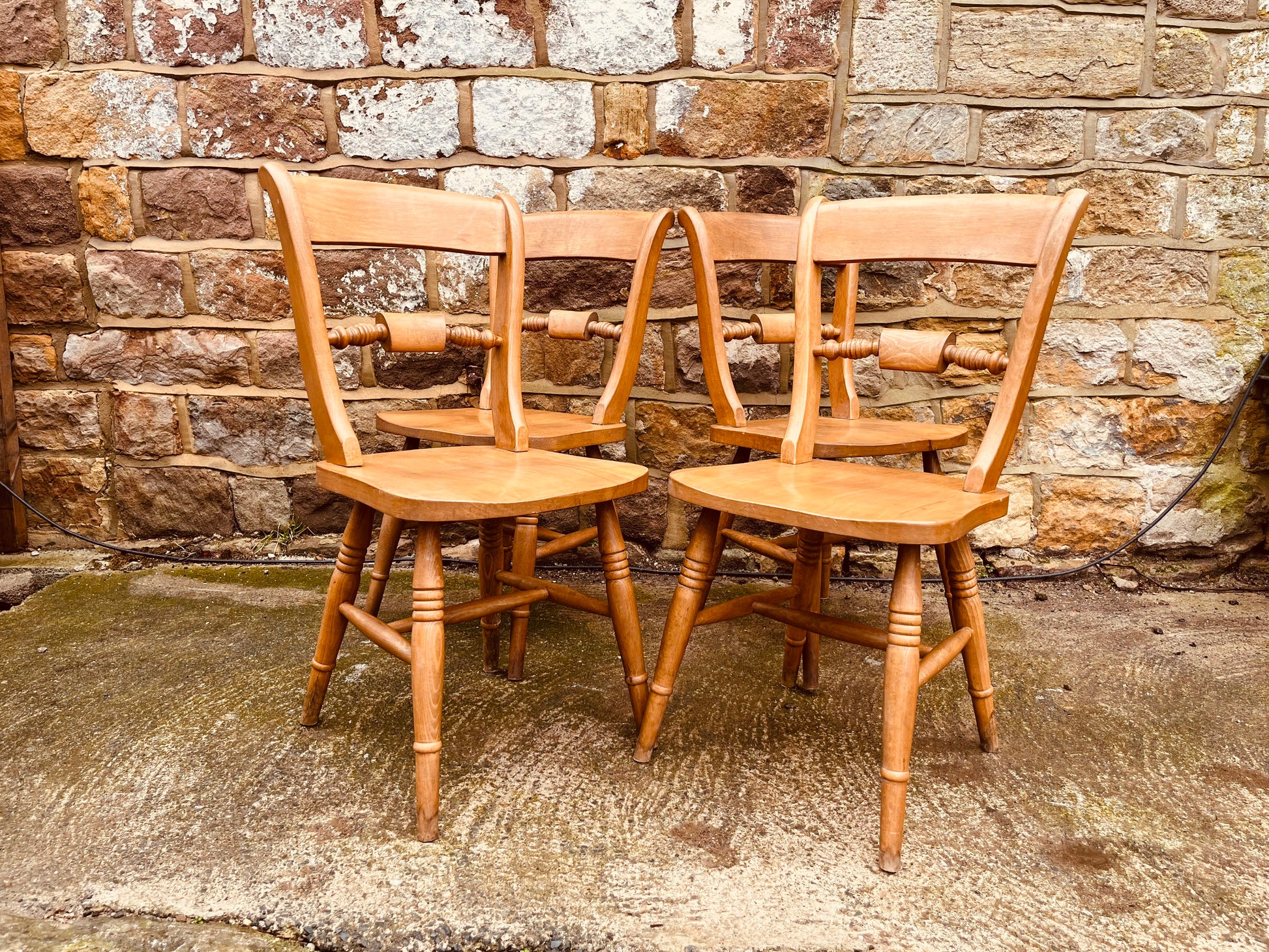 Set of 4 Vintage Elm & Beech Farmhouse Dining Chairs – Chapel Back Country Kitchen Seating