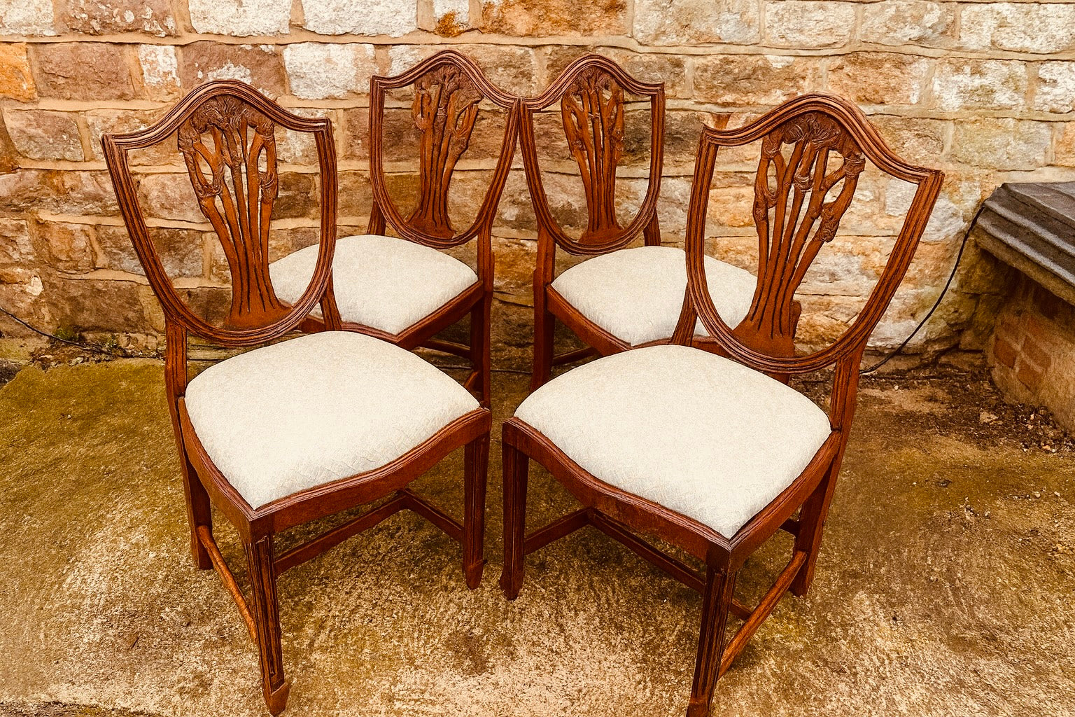 Set of 4 Vintage Shield-Back Mahogany Dining Chairs – Georgian / Hepplewhite Style with Upholstered Seats
