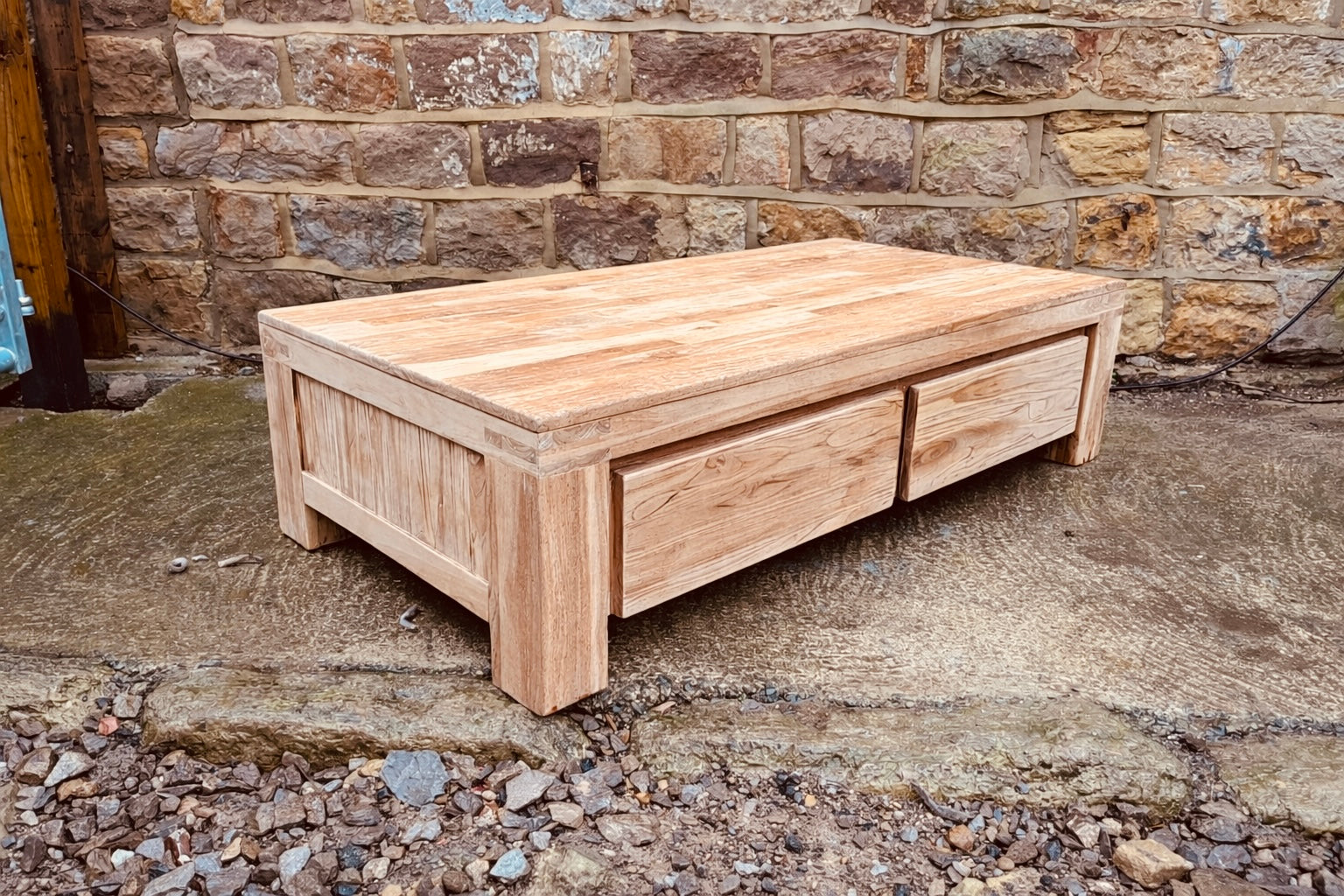 A beautifully proportioned solid wood coffee table, defined by its chunky construction, clean lines and warm natural wood finish. Designed to sit comfortably in both modern and characterful homes, this piece balances strong visual presence with practical everyday use.