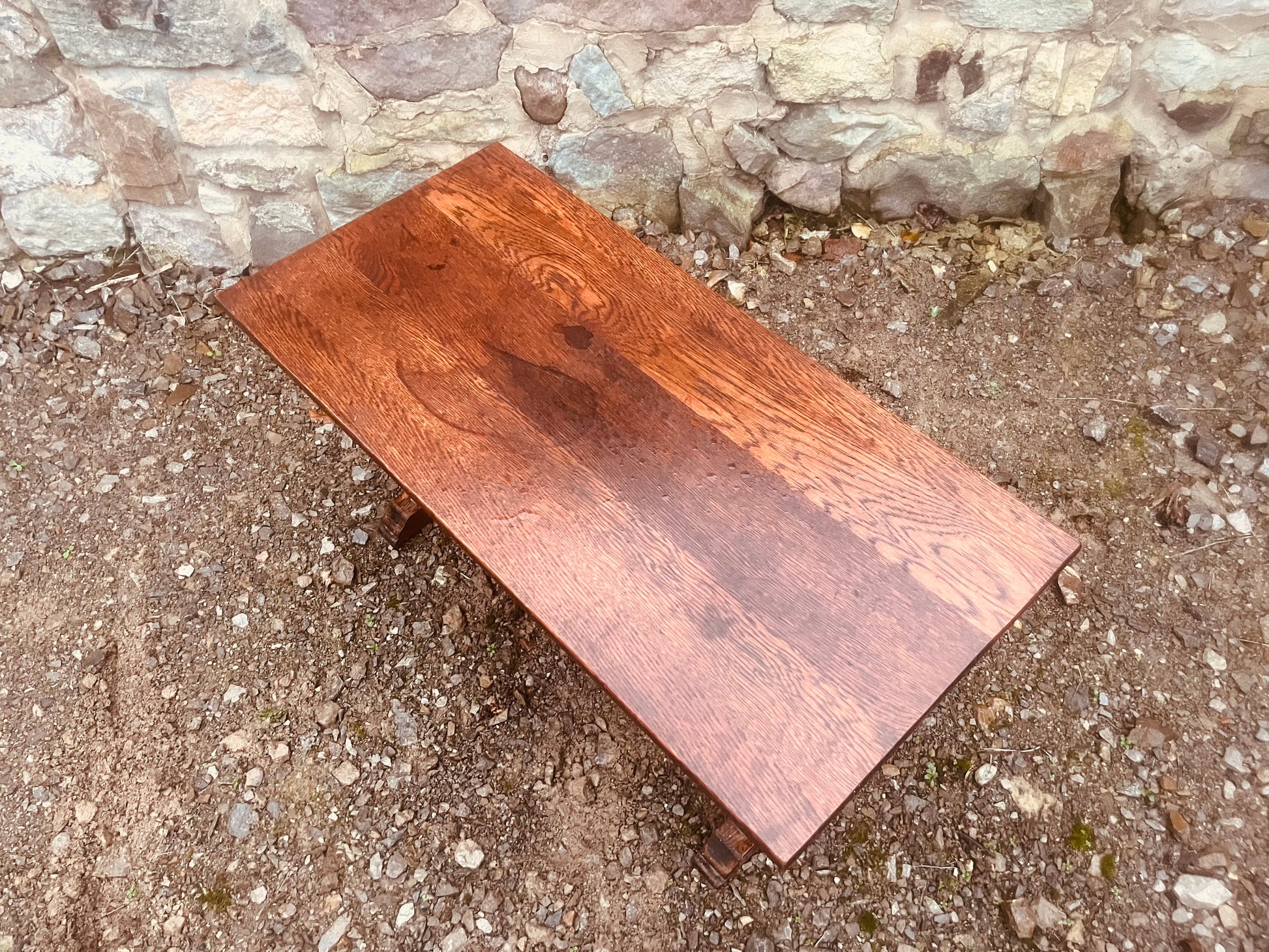 Vintage Solid Oak Trestle Table – Rustic Farmhouse Console